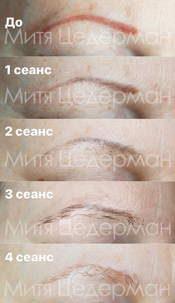 Брови могут пройти через несколько цветовых стадий: были серо-синими, стали красными, потом оранжевыми, потом жёлтыми, и только потом полностью светлеют. Это не ошибка врача — это последовательное разрушение разных компонентов пигмента.