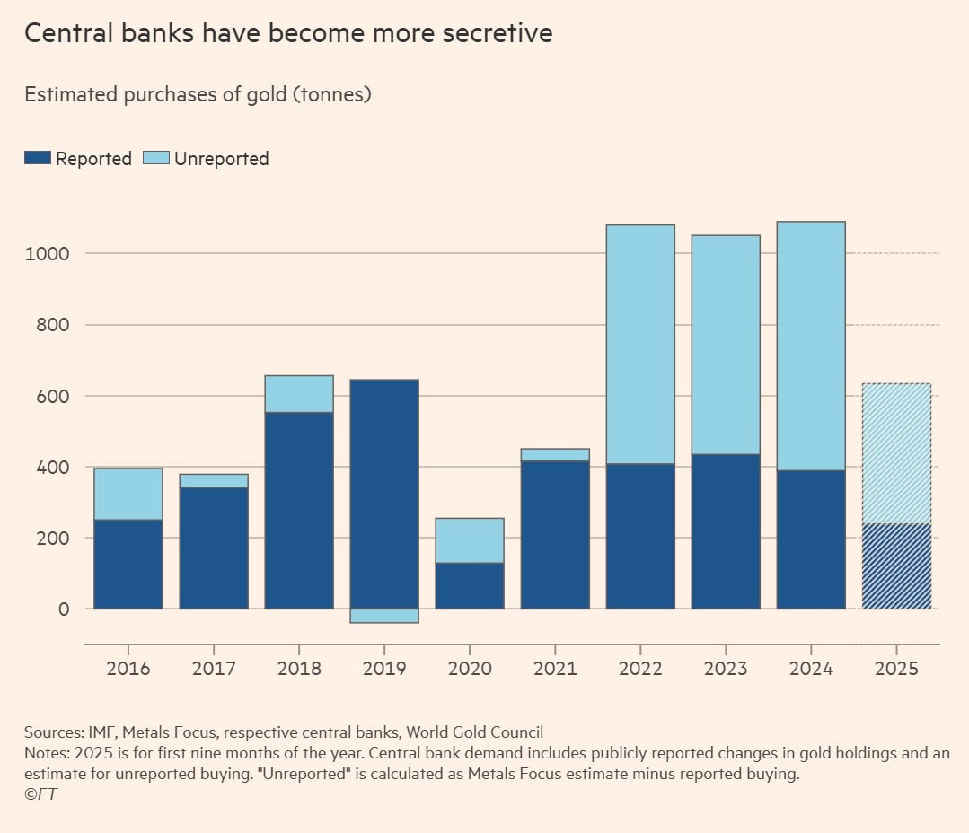 В ответ на пост Физическое #Золото Что тут сказать — слоупоки по жизни: Согласно публичным данным, объемы закупок центральным банком Китая в этом году были настолько низкими — 1,9 тонны в августе, 1,9 тонны в июле и 2,2 тонны в июне — что мало кто на рынке верит официальным данным. Аналитики Société Générale подсчитали, основываясь на данных о торговле, что общий объем закупок Китая в этом году может достичь 250 тонн, что составит более трети от общего объема спроса мировых Центробанков «Китай покупает золото в рамках своей стратегии дедолларизации», — заявил Джефф Карри, главный стратегический директор по энергетическим направлениям в Carlyle, по словам которого, он не пытается угадать, сколько золота покупает Народный банк Китая. «В отличие от нефти, за которой можно следить со спутников, с золотом это невозможно. Просто невозможно узнать, куда всё это идёт и кто его покупает» https://www.ft.com/content/b77a95b0-ee74-4bde-b11f-32ee0fe03cd8 @marketheart