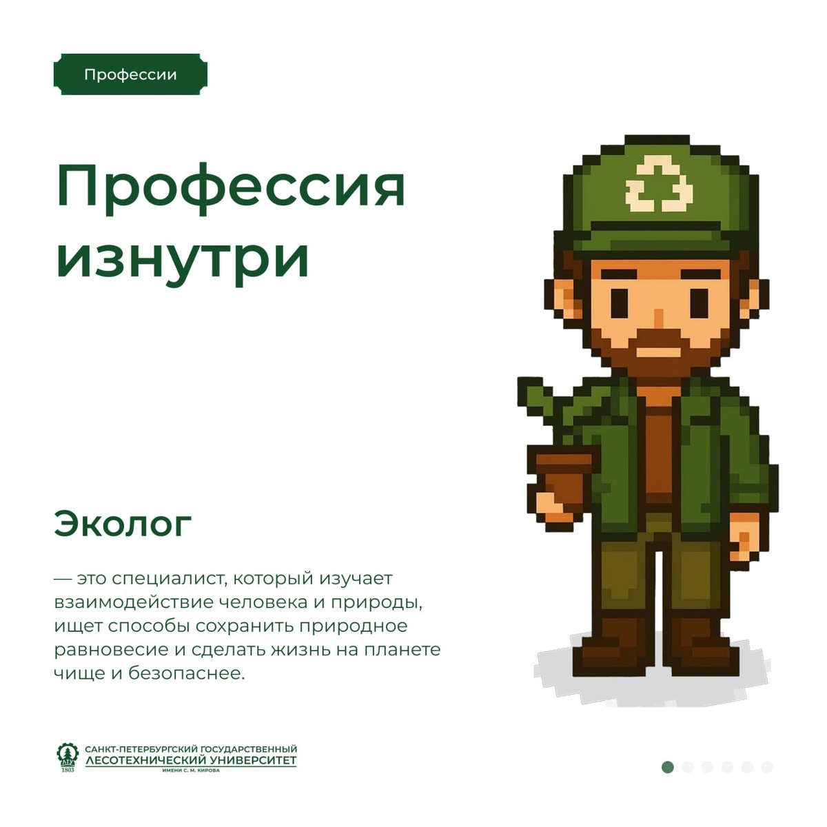 Мы продолжаем нашу рубрику «Профессии в деталях», где мы знакомим вас с самыми интересными специальностями, на которые готовит наш университет. Каждая карточка — это «витрина профессии», которая покажет вам, чем живут и что делают наши студенты и выпускники 🌱 Сегодня поговорим о профессии эколог🌿 Многие думают, что экологи просто «борются за природу» или следят, чтобы заводы не загрязняли воздух. Но на самом деле их работа — это наука о гармонии между человеком и окружающей средой 🌿 Эколог — это исследователь, аналитик и защитник природы в одном лице. Он изучает, как деятельность человека влияет на экосистемы, разрабатывает проекты по их сохранению, контролирует качество воды, воздуха и почвы, помогает компаниям стать «зелёными» и устойчивыми. Работа эколога требует не только знаний биологии, химии и географии, но и умения мыслить системно. Ведь природа — это огромная взаимосвязанная сеть, где любое действие вызывает отклик❤ #Профессии_в_деталях 👻 МАХ | 📲 ВК | 📝 ДЗЕН