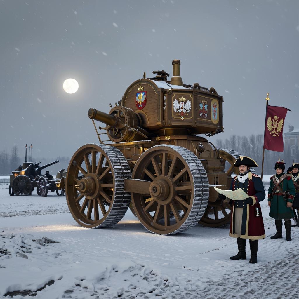 Капитан Василий Петрович Громов стоял перед своим отрядом элитных бойцов специального назначения императорской армии. Перед ними возвышались громадные металлические конструкции, покрытые льдом и снегом. Это были новейшие разработки русского военного гения — гидравлические боевые машины.