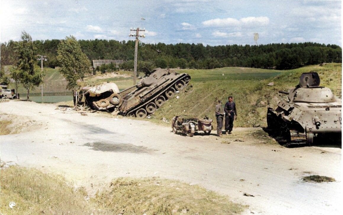 Уже 22 июня 1941 года немецкие войска столкнулись с ожесточённым сопротивлением — вопреки расчётам командования вермахта, «лёгкой прогулки» не получилось. Особенно неожиданным для немцев стал упорный отпор советских танковых частей. Эти первые локальные столкновения не только предвосхитили масштабные танковые сражения последующих недель, но и обнажили системные проблемы Красной армии, которые так и не удалось оперативно решить. Одним из крупнейших танковых боёв первого дня войны стало сражение под Алитусом (современная Литва). Оно развернулось в полосе обороны 5‑й танковой дивизии РККА, дислоцированной непосредственно у советско‑германской границы. Советские танкисты вступили в бой в крайне невыгодных условиях: Несмотря на то что на вооружении дивизии находились современные средние танки Т‑34, превосходившие по бронированию и вооружению большинство немецких машин, это преимущество нивелировалось организационными недостатками и господством люфтваффе в воздухе. Немецкие танкисты, хоть