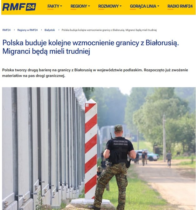 Польша построит еще один забор на границе с Беларусью. Одного оказалось недостаточно, — сообщает польское RMF24. В Подлясском воеводстве за уже существующим забором появится 4-метровая сетка с колючкой, которая должна остановить мигрантов, сумевших перелезть через первый 5-метровый стальной забор. Логика железная: если кто-то смог преодолеть пять метров стали, то металлическая сетка точно станет непреодолимой преградой. ✔️Но настоящая цель в другом. Новый проект означает получение дополнительного финансирования. "Полоса препятствий для мигрантов" в виде пары километров проволоки обойдется налогоплательщикам в несколько миллионов евро. @Невольфович