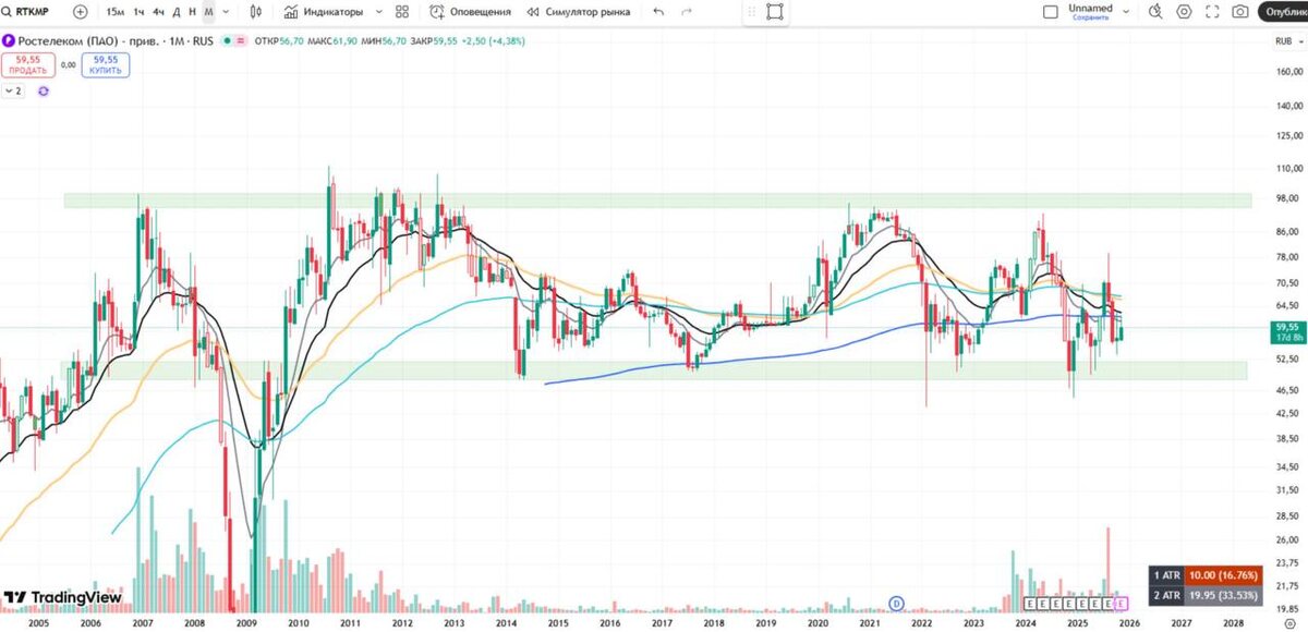 📱 Ростелеком. Уверенно стоит на ногах По итогам третьего квартала 2025 года Ростелеком $RTKM $RTKMP увеличил выручку на 8% по сравнению с аналогичным периодом прошлого года, достигнув 208,7 млрд рублей. Показатель OIBDA вырос аналогичными темпами (+8%) и составил 81,5 млрд рублей, а рентабельность по OIBDA сохранилась на высоком уровне 39%. 🏆 Знаковым достижением квартала стал выход компании на чистую прибыль в размере 5,6 млрд рублей, что кардинально отличается от убытка в 6,7 млрд рублей, зафиксированного годом ранее. Свободный денежный поток остался отрицательным (–5,1 млрд руб.), однако практически не изменился по сравнению с прошлым годом. Чистый долг компании вырос на 10% с начала года до 729,7 млрд рублей, при этом коэффициент долговой нагрузки все еще адекватный - 2,3х 📈 По словам президента компании Михаила Осеевского, основными драйверами роста стали мобильный бизнес, услуги широкополосного доступа и проекты по цифровизации бизнеса и государственных структур. Нейтраль