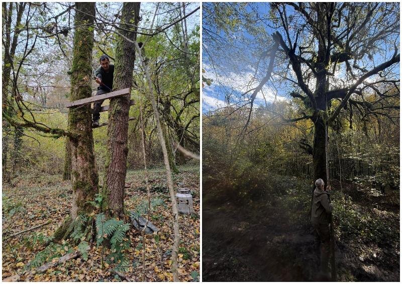 12 ноября в Сочинском нацпарке госинспекторы нашли следы браконьеров при патрулировании. В районе села Ахштырь Веселовского лесничества была обнаружена засидка и привада - приманка для медведя. Охотники используют канистру с двумя отверстиями, привязанную к тросу, внутри которой находится тухлое мясо, чтобы привлечь животное на запах. Охотничью вышку нашли во время рейда в Солох-Аульском лесничестве на дереве высотой 4 метра . «Конструкция выглядела старой, однако часть досок оказалась свежей, что свидетельствует о недавнем использовании. По мнению специалистов, вышка предназначалась для охоты на крупного зверя - медведя или кабана. Сооружения были демонтированы»- сообщили в пресс-службе Сочинского нацпарка. Напомним, с 2023 года в Сочинском нацпарке запрещена охота. В соответствии со статьей 258 УК РФ за незаконную охоту грозит штраф до 500 тыс. руб, либо в размере заработной платы или иного дохода осужденного за период до 2-х лет. Возможны исправительные работы или лишение свободы на