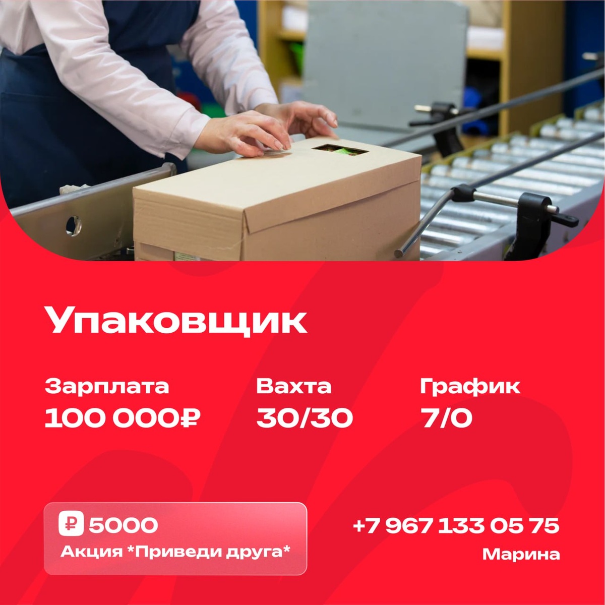 🔥 Вакансия: Упаковщик Зарплата: 100 000 руб. ✨ Условия работы: ✅ График: Вахта на выбор: 15/15, 30/30 или 30/15 дней; ✅ Проживание: комфортные квартиры ✅ Питание: трёхразовое горячее питание; ✅ Оплата: своевременные выплаты 2 раза в месяц; ✅ Снаряжение: полное обеспечение спецодеждой и СИЗ; ✅ Требования: ответственность, внимательность, опыт работы на складе или производстве приветствуется. 📌 Как устроиться? Оформите резюме через бота: @ravamet_bot Напишите в Telegram с пометкой «ВАХТА УПАКОВЩИК»: @ravamet Укажите в резюме: желаемую вахту, опыт, контакты. ℹ️ Подробности уточняйте у менеджера.