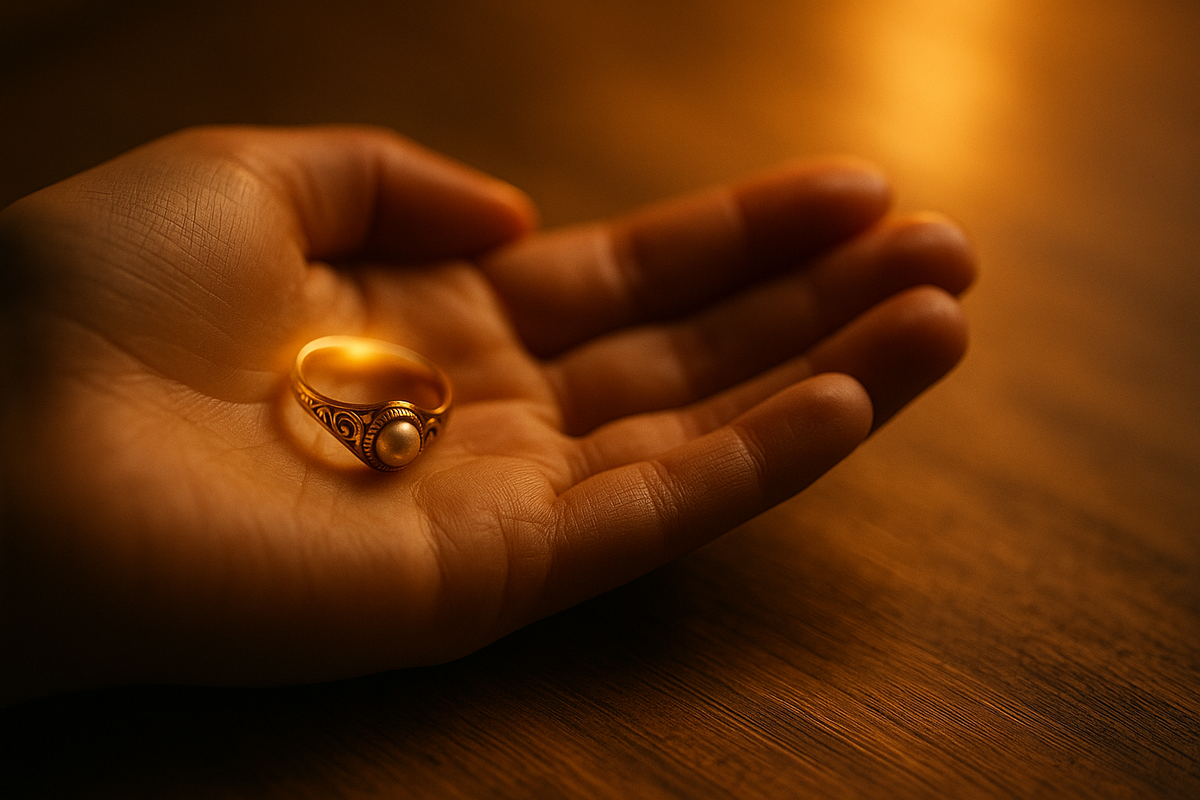 Когда я открыла крышку, кольцо лежало на самом дне, потускневшее, но всё такое же родное. Я взяла его в руки — и вдруг ощутила странное тепло. Это чувство нельзя было объяснить логикой: будто из глубины памяти поднялась волна. Запах маминых духов, тёплый свет кухни, воскресные пироги, когда за окном метель, а дома тихо и уютно. Я неожиданно надела кольцо на палец — оно будто само нашло своё место, словно ждало этого все годы.