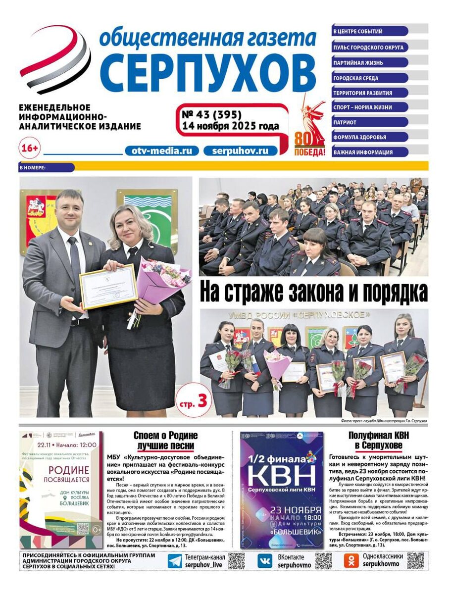 🗞️ О самых интересных событиях Серпуховского региона читайте в новом номере «Общественной газеты – Серпухов»: ______________________________________________ ✔️В службе — честь. Ко Дню сотрудника органов внутренних дел: репортаж с торжественного награждения серпуховских полицейских, которые стоят на страже правопорядка. ✔️Благоустройство Подмосковья. Губернатор Андрей Воробьев проверил ход работ по благоустройству, ЖКХ и ремонту дорог. Узнайте, что уже изменилось в Серпухове и какие проекты ждут город в будущем. ✔️Контроль за вывозом мусора. Администрация Серпухова усилила контроль за вывозом ТКО. Какие меры приняты для решения проблем с регоператором — читайте в нашем материале. ✔️Новые правила для мусорных площадок. Кто должен отвечать за чистоту у контейнеров? Депутат Госдумы Александр Коган — о поправках, которые определят ответственных и упорядочат раздельный сбор отходов. ✔️Возрождение святыни. В Казанском храме Серпухова прошло первое за 100 лет архиерейское богослужение. Ис