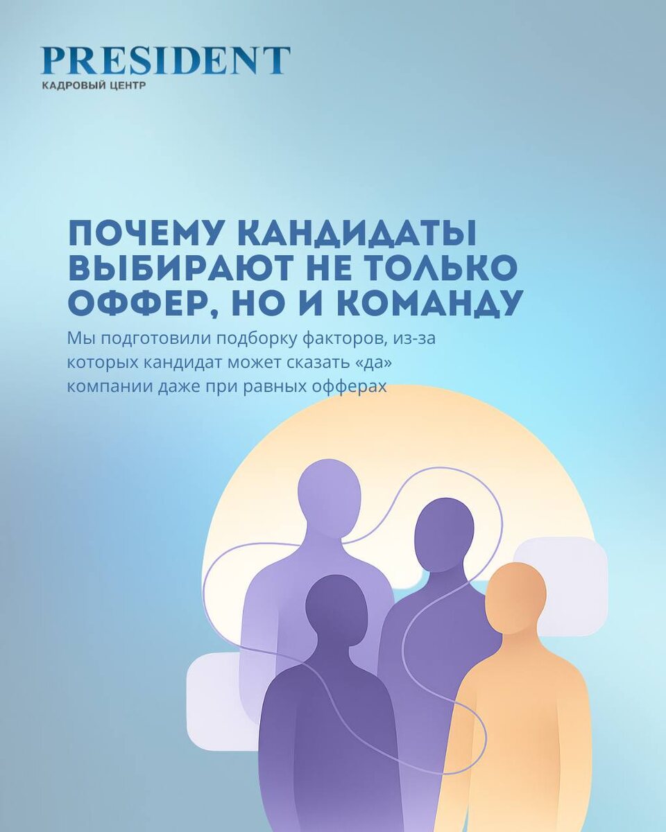 💬Подборка: Почему кандидаты выбирают не только оффер, но и команду Сегодня сильные специалисты смотрят шире, чем цифры в предложении. Они выбирают не просто работу — среду, людей и атмосферу, в которой им предстоит жить по 8 часов в день. #подборка #HRинсайты #команда #оффер #рекрутинг #кадровыйцентрPRESIDENT #PRESIDENT