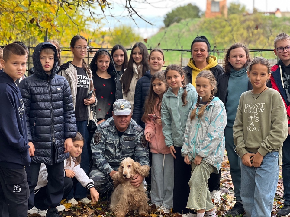 Член Общественного совета при Отделе МВД России по Крымскому району Нина Козачёк организовала экскурсию для учащихся 5 и 6 классов МБОУ СОШ №1 города Крымска на питомник кинологической группы Отдела МВД России по Крымскому району. Инспекторы-кинологи кинологической группы Отдела Алексей Мыколенко и Владимир Сидоренко провели экскурсию по территории питомника, познакомили ребят с четвероногими коллегами – служебными собаками Тайрис, Арес, Борзой, Веста и Рада.