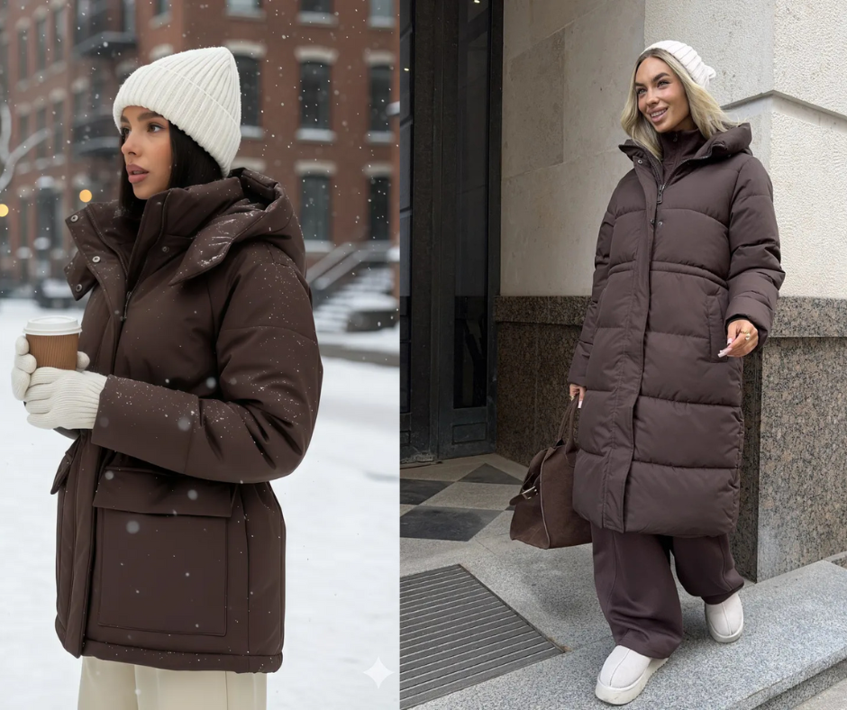 В этом сезоне коричневый цвет занимает особое место в палитре модных пуховиков. От глубокого шоколадного до нежного карамельного, эти оттенки излучают тепло, уют и утонченность. Коричневые пуховики прекрасно сочетаются с другими природными цветами, создавая гармоничные и элегантные образы. Они идеально впишутся как в повседневный городской стиль, так и в более формальные комплекты. 📌 Модель 1 📌Модель 2 В сезоне 2025-2026 набирают популярность пуховики без выраженной прострочки. Этот минималистичный подход придает издел