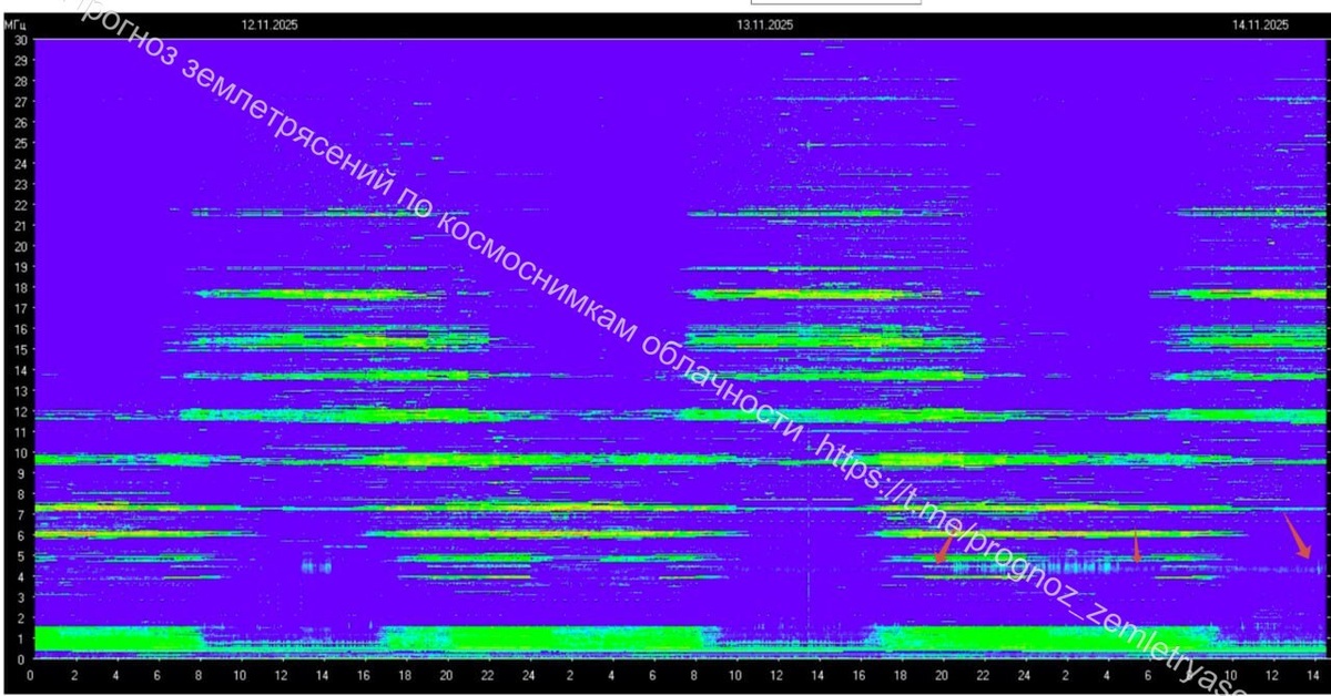 Из предвестников на сейсмику М6 и выше на глобальном уровне имеем протяженные аномалии электромагнитного фона в Томске (фото 1) и магнитного