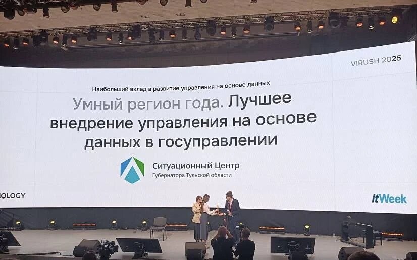 Тульская область получила премию «Умный регион года» на конференции ViRush 2030, где были представлены лучшие практики управления на основе данных. Об этом сообщил губернатор Дмитрий Миляев в своем канале в MAX. Регион отмечен за успешное внедрение современных технологий в систему государственного управления. Ситуационный центр губернатора Тульской области продемонстрировал на мероприятии разработанные в регионе системы для обработки обращений граждан и контроля исполнения поручений. Эти решения вызвали особый интерес у профессионального сообщества. Конференция собрала более 1000 специалистов из государственного сектора, бизнеса и общественных организаций. Эксперты высоко оценили эффективность созданной в Тульской области экосистемы управления, основанной на данных.