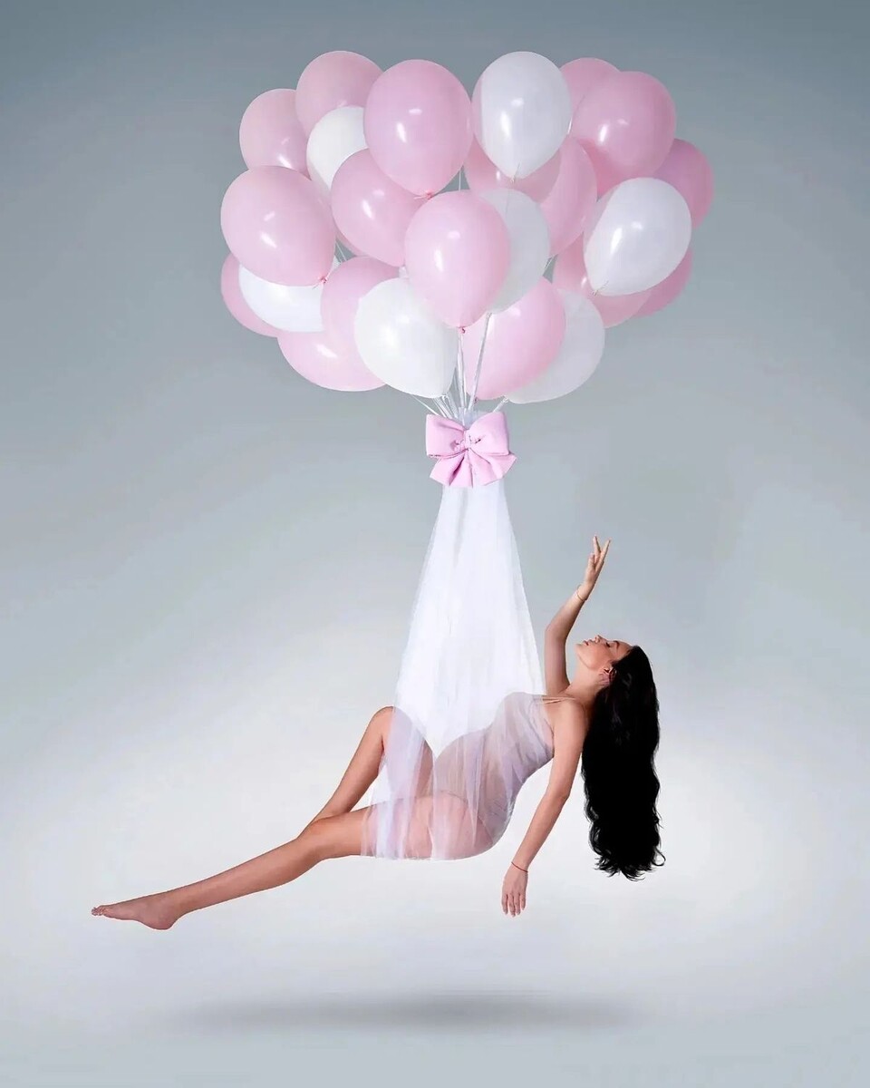 15. История из практики. На съёмке в Москве для ювелирного бренда мы использовали только белые шары и свет от окна. Девушка в платье цвета шампань держала шарик на длинной ленте. Кадры получились минималистичными, но с настроением — отражение света в шаре выглядело как солнечное пятно. Простота — всегда работает.