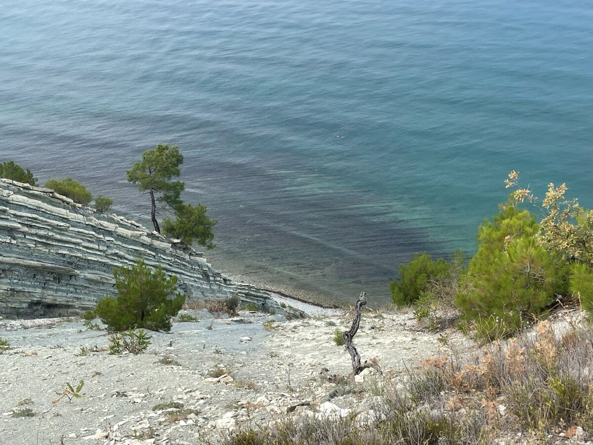 Ранним утром, до жары, побродили по маршруту ВЕЛОSEA, с выходом на смотровые площадки, откуда захватывающие дух и завораживающие взор виды на белые скалы. К сожалению, не удалось преодолеть знаменитый спуск «278 ступеней» к дикому пляжу, просто потому, что он к нашему огорчению оказался сломанным, но вид сверху нас вполне устроил. Отметили для себя, что здесь отлично можно проводить время в межсезонье и зимой, когда интенсивная пешая нагрузка будет возможна целый день, и дневное пекло не будет утомлять. По сути, от Голубой бухты до Кабардинки можно пройти, по типу похода по знаменитой Ликийской тропе.