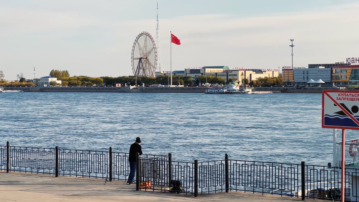 Гуляя по ней, я не мог отделаться от мысли: когда мы всматриваемся в даль и пытаемся разглядеть, что происходит на другом берегу, в это же самое время кто-то с той стороны смотрит на нас и, возможно, тоже удивляется картинке. (Кстати, в Хэйхэ мы тоже съездили и смогли посмотреть на Россию с другого берега).