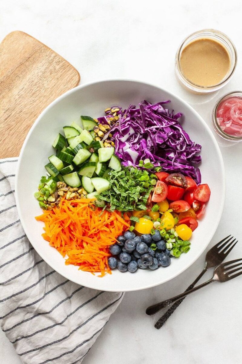 🌈 Радуга на тарелке: почему это не только красиво? Как нутрициолог я часто слышу: «Какой самый полезный продукт?». А я всегда отвечаю: «Тот, которого нет в вашей тарелке!». Разнообразие — вот главный суперфуд, который мы недооцениваем. 🎯 Почему однотипное питание провал: • Нет универсального продукта со всеми витаминами • Разные цвета = разные фитонутриенты • Ограниченный рацион = дефицит микроэлементов 💡 Простое правило: Следите, чтобы в тарелке было 3-4 цвета каждый прием пищи: • 🔴 Красные (помидоры, ягоды) — ликопин для сердца • 🟢 Зеленые (шпинат, брокколи) — хлорофилл для детокса • 🟣 Фиолетовые (баклажаны, черника) — антоцианы для мозга • 🟠 Оранжевые (морковь, тыква) — бета-каротин для иммунитета 🌱 Мой лайфхак: В выходные готовлю «радужный» контейнер: Нарезаю овощи всех цветов и храню в холодильнике. Добавляю к каждому приему пищи — разнообразие без усилий! Помните: ваша тарелка должна напоминать палитру художника, а не монохромный офисный документ! А сколько цветов в