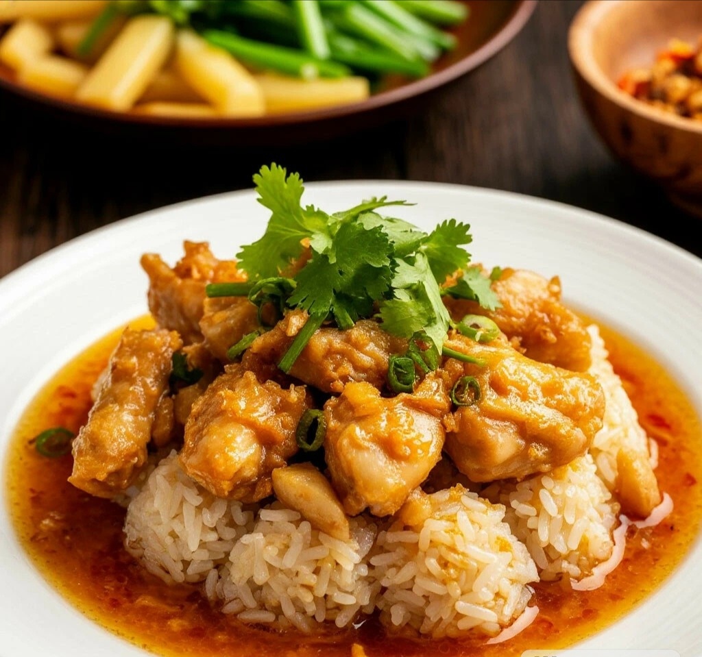 ГОРЯЧЕЕ — СИНГАПУРСКИЙ ЧИКЕН РАЙС В ОДНОЙ КАСТРЮЛЕ 🇸🇬 Мяу, мои любители азиатской кухни! 😺 Это блюдо — настоящая легенда сингапурских фуд-кортов! Ароматный рис с хрустящей куриной кожей готовится в одной кастрюле, что делает его идеальным для пятничного ужина без лишних хлопот! 🍚✨ СИНГАПУРСКИЙ ЧИКЕН РАЙС В ОДНОЙ КАСТРЮЛЕ ИНГРЕДИЕНТЫ: 🧾 ·Куриные бедра на коже — 2 шт. (около 500 г) ·Рис длиннозерный — 200 г ·Вода — 450 мл ·Чеснок — 3 зубчика ·Свежий имбирь — кусочек 3 см ·Растительное масло — 2 ст.л. ·Соль — 1 ч.л. ·Соевый соус, острый соус — для подачи ВРЕМЯ ПРИГОТОВЛЕНИЯ: ⏰ 45 минут СЛОЖНОСТЬ:🐾 Нужна сноровка ПОШАГОВАЯ ИНСТРУКЦИЯ: 👩🍳 1. Подготовка: · Рис промойте. · Чеснок и имбирь мелко порубите. · Курицу посолите. 2. Обжарка курицы: · Обжарьте курицу кожей вниз до хрустящей корочки. · Переложите на тарелку. 3. Создание ароматной основы: · В том же жире обжарьте чеснок и имбирь 1 минуту. · Добавьте рис, обжаривайте 2 минуты. 4. Томление: · Верните курицу в кастрюлю. · Вл
