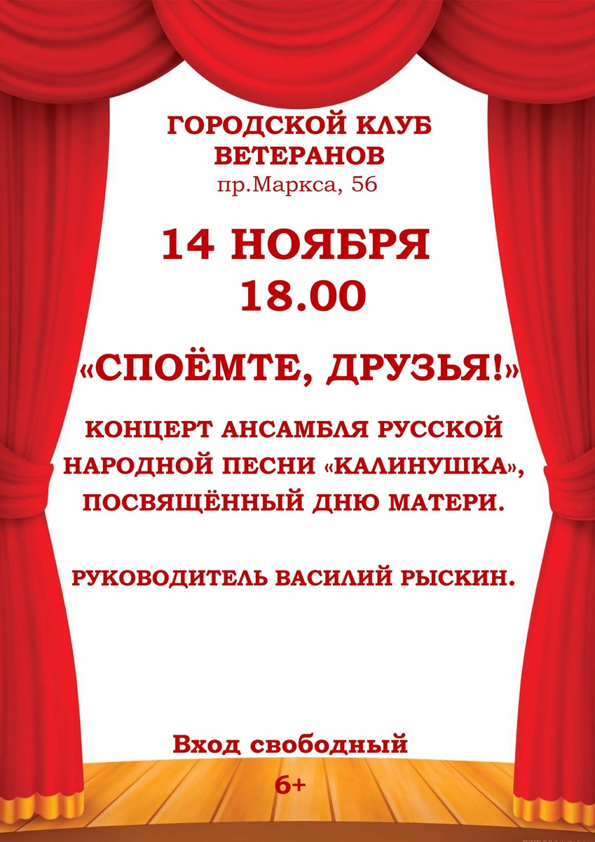 🎶Ансамбль русской народной песни «Калинушка» приглашает СЕГОДНЯ, 14 ноября, в 18:00 в Городской клуб ветеранов на праздничный концерт