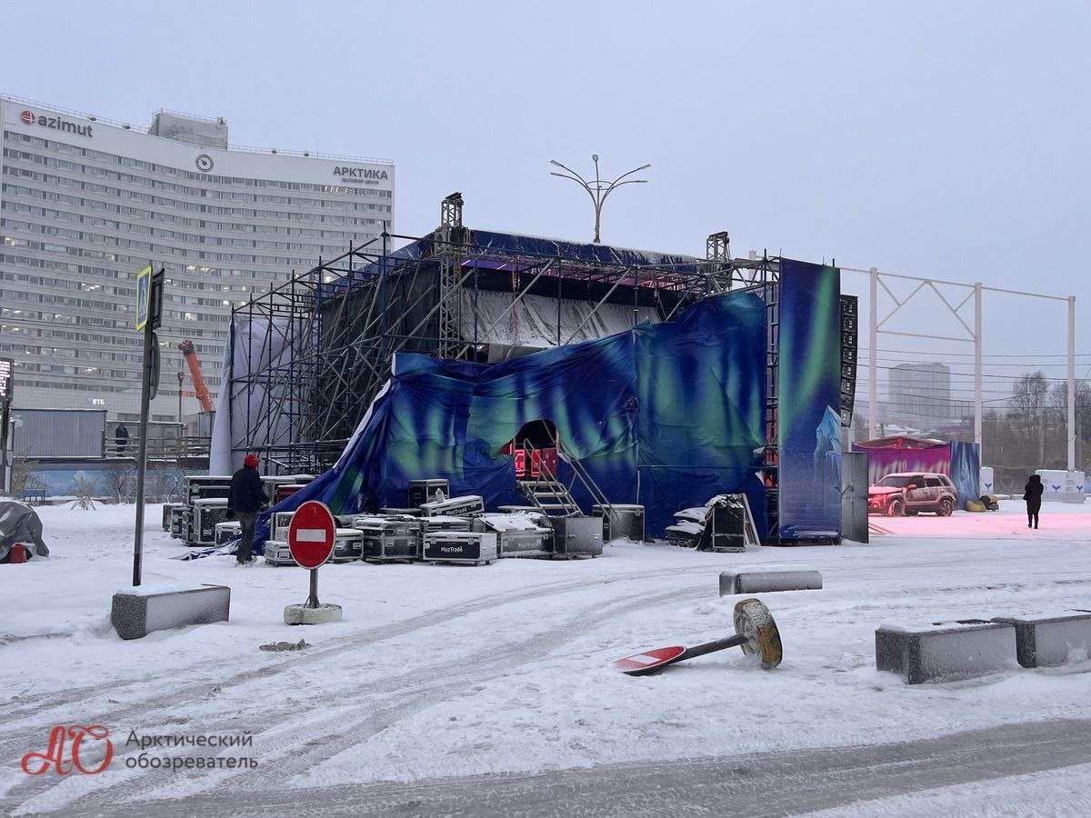 Впрочем, главный символ Нового года столицы Заполярья выдерживал и не такой ветродуй