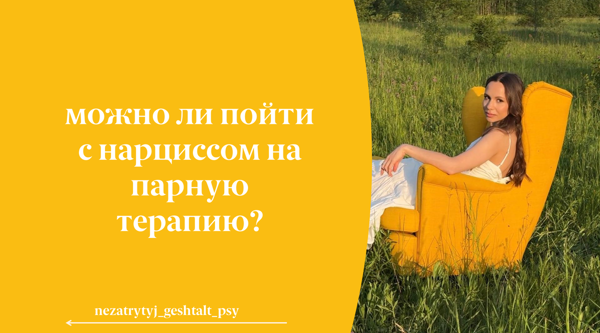 С нарциссом нет. У него нет запроса на изменение или улучшение отношений (потому что в таком совместном запросе над собой придется работать каждому участнику отношений). У каждой пары есть свои сильные и слабые стороны, особенности коммуникации и проблемы в ней. Каждый в паре несет в свои отношения уникальный способ взаимодействия, что-то взяв из родительской семьи, что-то взяв из своего отношенческого опыта. У каждого человека есть "слепые пятна", потребности и порой деструктивные способы удовлетворения потребностей. В целом, каждому есть что обсудить со своим терапевтом, материал для работы с психологом у любого человека будет всегда. В парной терапии, если пара взаимно осознает, что запрос - улучшение отношений (а не их завершение), в терапевтическом поле открывается огромное поле для исследования каждого участника пары. Нарцисс приходит в парную терапию не чтобы исследовать себя и работать над собой, а чтобы что-то доказать "партнеру", терапевту и самому себе. Что-то - тоже всегда