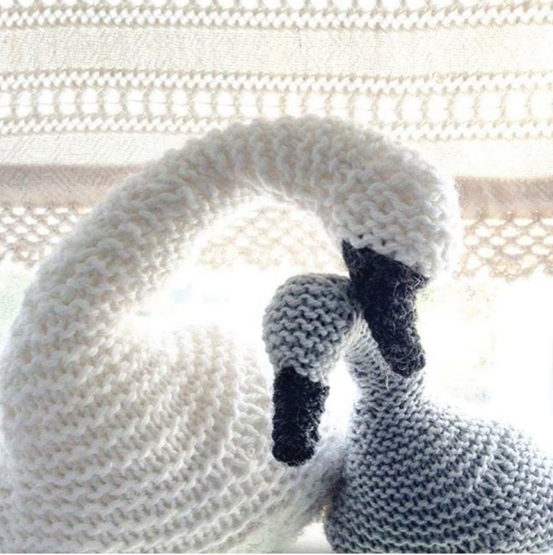 Вяжется одной деталью (сделать по 1 для каждого лебедя): набрать 3 п. (пряжа желтого цвета) 1-й ряд: изн. п. 2-й ряд: добавить п., добавить п., 1 лиц. = 5 п. 3-й ряд: добавить п., 2 изн., добавить п., 1 изн. = 7 п. 4-й ряд: добавить п., 4 лиц., добавить п., 1 лиц. = 9 п. Вязать 3 ряда лиц. гладью.