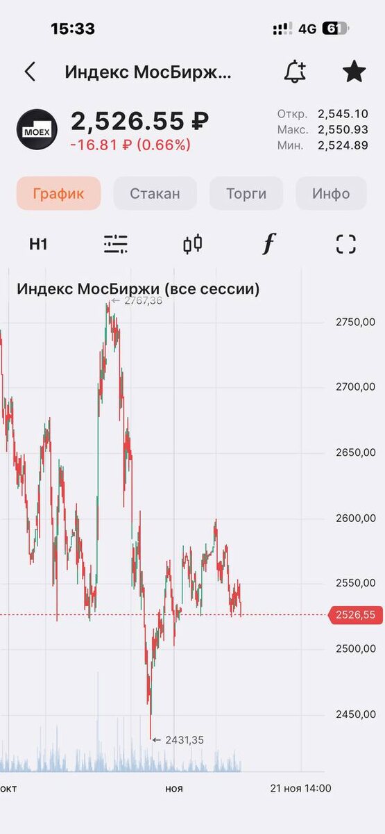 На утро у нас рынок снова давят. Пока те кто набрал мегашорт продолжают свою игру. Не думаю, что из цель куда то утопить сильно рынок, скорее цель не дать вырасти до декабря. Так что пока по прежнему хорошие новости игнорируются, плохие выдумываются. Есть вероятность что до декабрьской экспирации ждать и придется. Из хорошего пока только то, что техника вниз уже отработана и по ней падать мы уже не обязаны. писал про 2520 заранее наверху, на 2524 мы уже были
