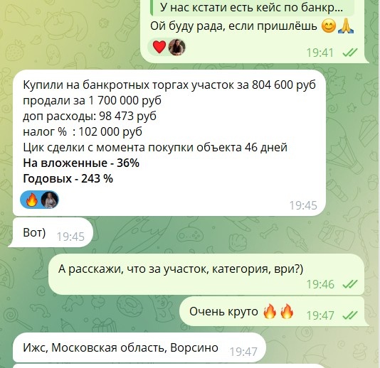 Пошаговые объяснения и поддержка помогли ей увидеть систему — как устроены торги, где искать прибыльные лоты и как оценивать их без стресса.