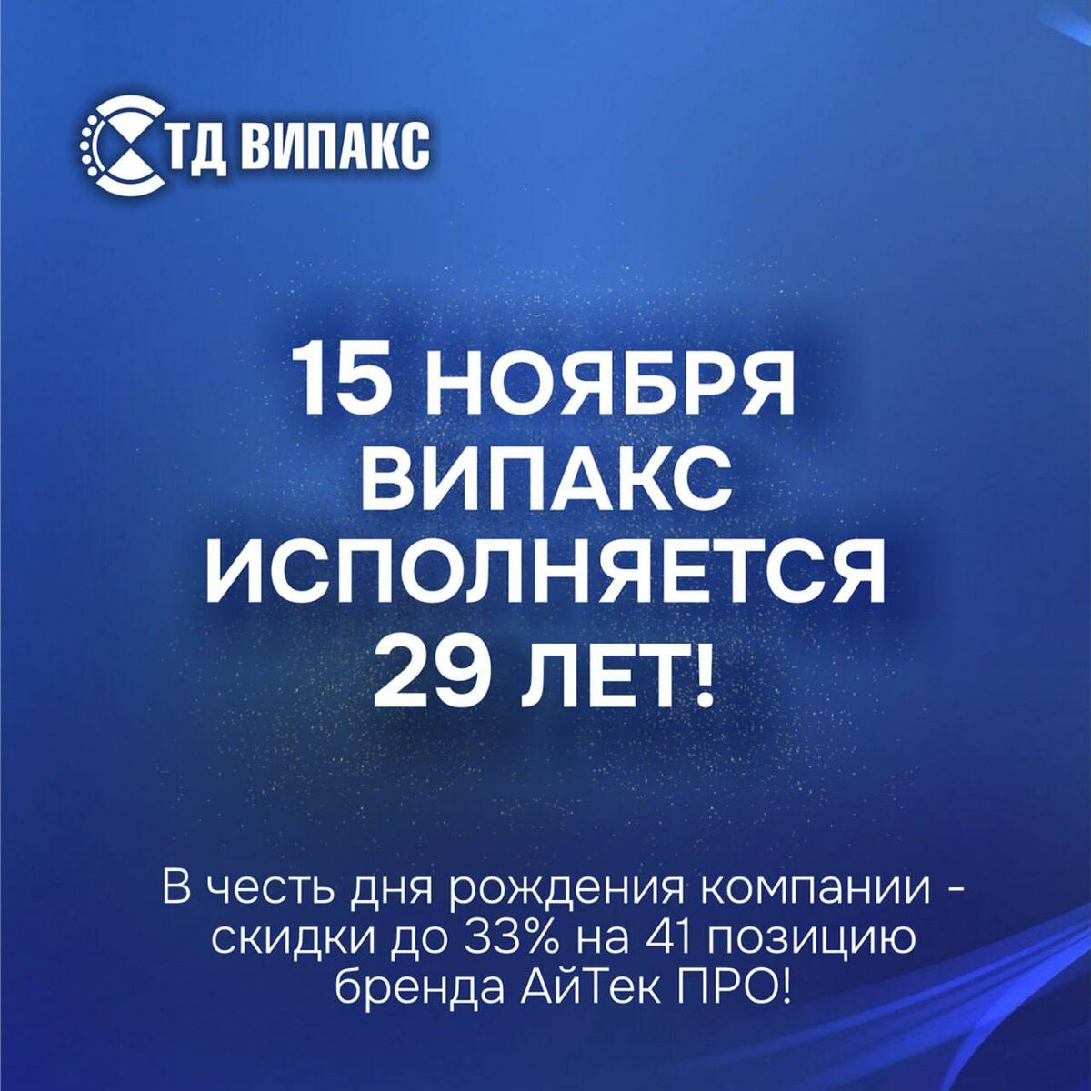 🎉 ВИПАКС исполняется 29 лет! В честь дня рождения компании объявлена специальная акция на оборудование бренда АйТек ПРО — скидки до 33% на 41 позицию! В акцию включены: 📹 видеокамеры; 💽 видеорегистраторы различных серий; 🔌 PoE-коммутаторы, блоки питания, монтажные аксессуары, считыватели и другое оборудование. АйТек ПРО — это линейка оборудования компании ВИПАКС, сочетающая надежность, качество и соответствие требованиям отечественного рынка. 📅 Срок действия акции: до конца 2025 года. Подробная информация и перечень оборудования доступны на официальном сайте: vipaks.com ВИПАКС — 29 лет мы делаем мир безопаснее! Благодарим партнёров за доверие и продолжаем создавать технологии, на которые можно опираться.