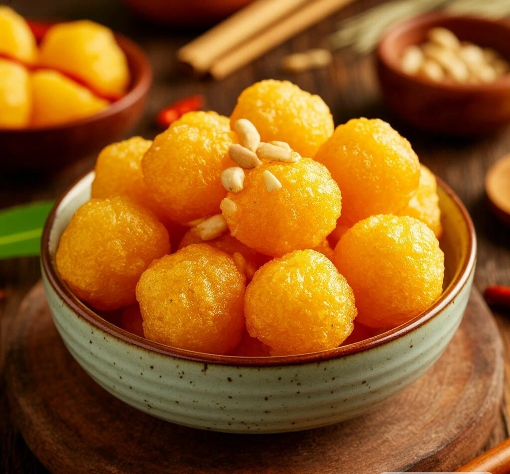 ВКУСНЫЙ И ПОЛЕЗНЫЙ ПЕРЕКУС — КВЕК-КВЕК 🇵🇭 Мяу, мои любители необычных закусок! 😺 Сегодня мы отправляемся на Филиппины, где на улицах продают эти забавные оранжевые яички в хрустящем кляре! Идеальный перекус на ходу! 🥚✨ КВЕК-КВЕК (KWEK-KWEK) ИНГРЕДИЕНТЫ: 🧾 ·6 перепелиных яиц (отваренных вкрутую) ·1/2 стакана муки ·1/4 стакана кукурузного крахмала ·1/2 стакана ледяной воды ·1 ч.л. паприки ·Щепотка куркумы ·Соль, перец по вкусу ·Масло для фритюра ВРЕМЯ ПРИГОТОВЛЕНИЯ: ⏰ 20 минут СЛОЖНОСТЬ:🐾 Проще некуда ПОШАГОВЫЙ РЕЦЕПТ: 👩🍳 1. Смешайте муку, крахмал, паприку, соль и перец. 2. Постепенно влейте воду, помешивая, до консистенции жидкого теста. 3. Обмакните яйца в кляр. 4. Обжарьте во фритюре (170°C) 2–3 минуты до хрустящей корочки. 5. Подавайте с соусом. ПОЧЕМУ ЭТО ПЕРЕКУС? 🌟 ·Порционность: Небольшие порции на 1–2 укуса ·Удобство: Едятся руками или шпажкой ·Сытность: Белок и углеводы надолго насыщают ·Уличный формат: Идеально для еды на ходу ГДЕ РАСПРОСТРАНЕНО: 🇵🇭 Популярны