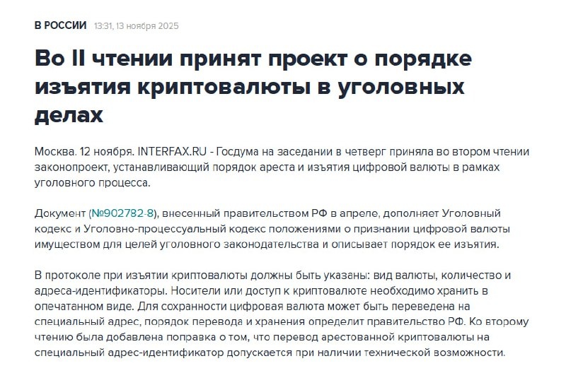 Собственно, практика уже была сформирована. Этот тот случай, когда законодатель подгоняет нормы права под уже созданную правоохранителями базу... ...законопроект закрепляет уже существующую практику изъятия цифровых активов в ходе следственных действий как с "холодных кошельков" (путем изъятия устройств), так и с "горячих" – через получение ключей, создание скриншотов и фиксацию данных. Также предусмотрено взаимодействие с зарубежными криптобиржами.