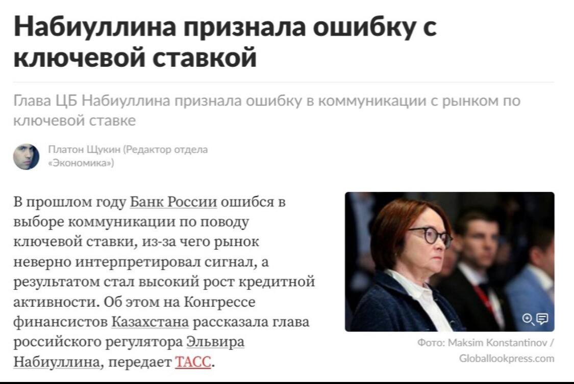 ‼️🚨Ну что. Ну вот и сама Эльвира признала, что она ошибалась. А то что говорилось у нас было правильным. Интересно как себя сейчас чувствуют те кто тогда писал, как мы тут чего то не понимаем и как Эльвира права 😂🤣 У них сейчас и манипуляции юриков с шортом в моменте на рынке нет :) ☝️вы по прежнему на канале с лучшим пониманием рынка и экономики.