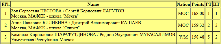 У девушек далеко впереди Лена Костылева и София Дзепка, причем для обеих их баллы в табличке далеко не предел. Обе могут прибавить еще баллов 10. Из остальных фигуристок десятки в наименьшей степени свой потенциал раскрыли Марго Базылюк, Вика Стрельцова и Лидия Плескачева, что обещает нам интригу на вторую половину сезона.