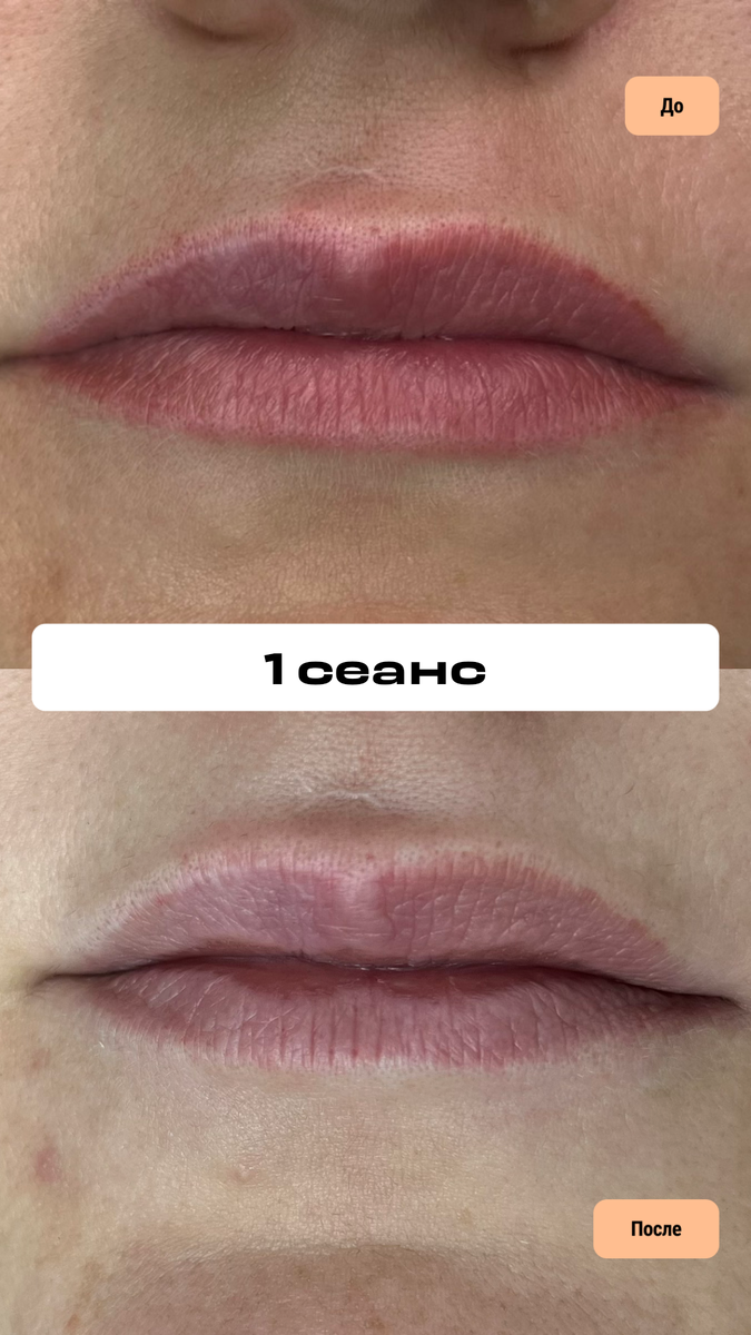 Когда пигмент полностью ушёл, губы возвращаются к естественному цвету. Можно оценить их натуральный оттенок, форму.