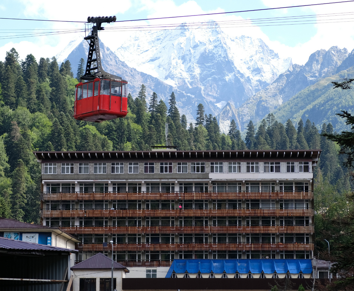 Находится на Домбае (странно было бы, если с таким названием она оказалась в другом месте) Можно было бы подумать, что ей не повезло. Ибо "исторических" наслоений на ней столько, будто она стоит хотя бы пару тысяч лет, а не с 1972 года. Да, исторический облик значительно пострадал, но этой гостишке, на мой взгляд, всё-таки повезло. Об этом ниже. Я насчитал на Домбае 4 культовых советских гостишки. Этот рейтинг "культовости" сугубо субъективный, очевидно. 1) "Солнечная долина". Самая культовая. 1936 год постройки. Огромный терем из сруба. 30-е годы - очень интересный период в жизни "спортивного" Кавказа. Интересующимся рекомендую почитать об этом. Так вот... "Солнечная долина" пережила многое, включая Вторую мировую и немецкую оккупацию. Но... сгорела дотла в 2016 году. Среди местных популярно мнение, что её спалили хозяева, чтобы получить страховку. В интернете можно посмотреть душераздирающее видео о том самом пожаре 2) "Горные вершины". О ней я писал ранее 3) "Аманауз". Самая загадоч