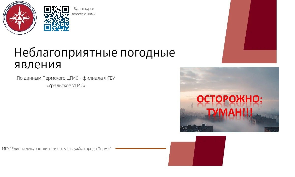 ⚠️По данным Пермского ЦГМС - филиала ФГБУ «Уральское УГМС»: ЦГМС: в ближайшие 1-3 часа и до конца суток 14 ноября в отдельных районах Пермского края ожидается сильный туман с видимостью 50 м. и менее. ✅В связи с прогнозируемыми метеорологическими явлениями рекомендуем: 1. Избегать нахождение рядом с линиями электропередач; 2. При авариях на сетях электроснабжения необходимо обесточить все электроприборы, соблюдать требования пожарной безопасности. ✅Участникам дорожного движения рекомендуем: 1. Водителям соблюдать скоростной режим и дистанцию, избегать резких маневров и торможений. Движение осуществлять с учетом дорожного покрытия. 2. Пешеходам – соблюдать осторожность при передвижении пешком и при переходе проезжей части. ‼️Будьте внимательными и осторожными! О прогнозируемых погодных явлениях, соблюдении правил безопасного поведения и требований пожарной безопасности сообщите родным и знакомым. ☎️Телефон вызова служб экстренного реагирования: «101», «112» - с мобильного телефона, выз
