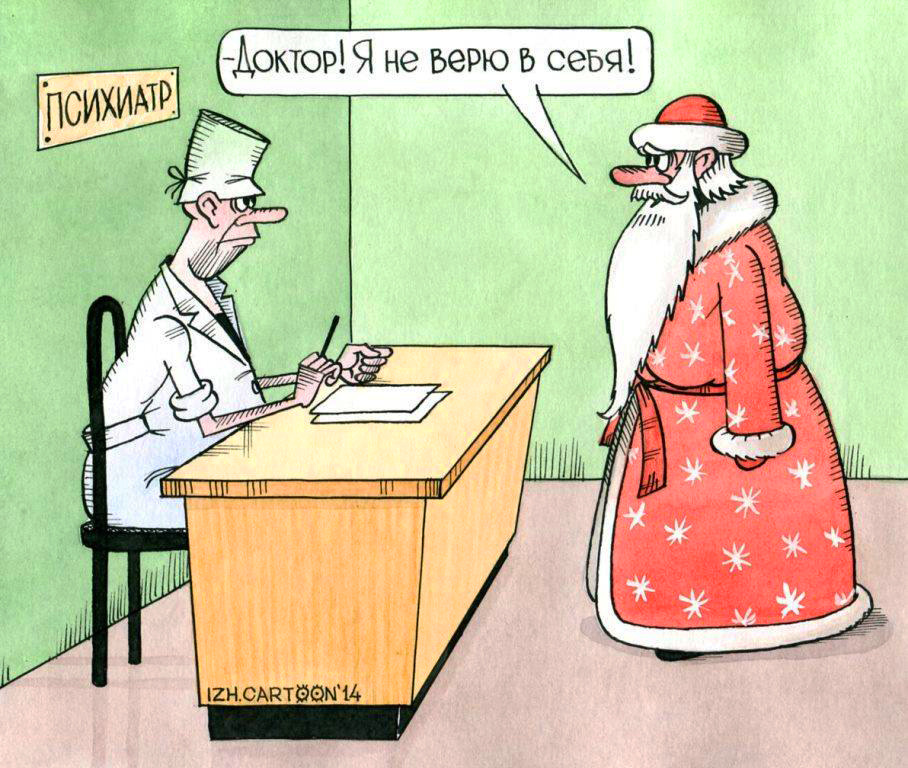 Новый год все ближе, ну а в моем блоге продолжают выходить тематические праздничные подборки! Статья с 10 смешными новогодними комиксами уже была, ну а теперь пришло время для карикатур: сегодня я отобрал для вас десятку смешных зарисовок про Деда Мороза, подарки и нарядную елку. Надеюсь, что вам понравится! Работы художника из Воткинска Владимира Ижболдина начали появляться в газетах уже в 1987 году - с тех пор карикатуры этого автора были опубликованы в огромном количестве изданий и становились лауреатами множества премий. Юмор Владимира Ижболдина отличается простотой и лаконичностью, будь то более житейский сюжет или что-то сказочное - вроде похода Деда Мороза к психиатру. Российский художник Валентин Дружинин долгое время сотрудничал с газетой «Комсомольской правдой» и какое-то время даже числился в ней штатным художником. За свою карьеру художник создал свыше 10 тысяч карикатур: работы Валентина Дружинина получаются очень яркими и смешными, а образы в них - узнаваемыми. Воронежски