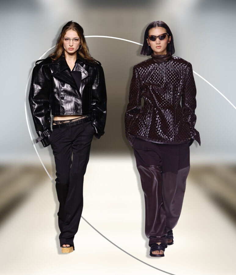 Фото: Mugler, Stella Mccartney Несмотря на все еще лидирующий оверсайз, порадовало обилие жакетов, платьев и блузок — от максимально облегающих до моделей с легким акцентом на талии. Кто знает, что ждет нас через год, но пока игра в женственность нам нравится.