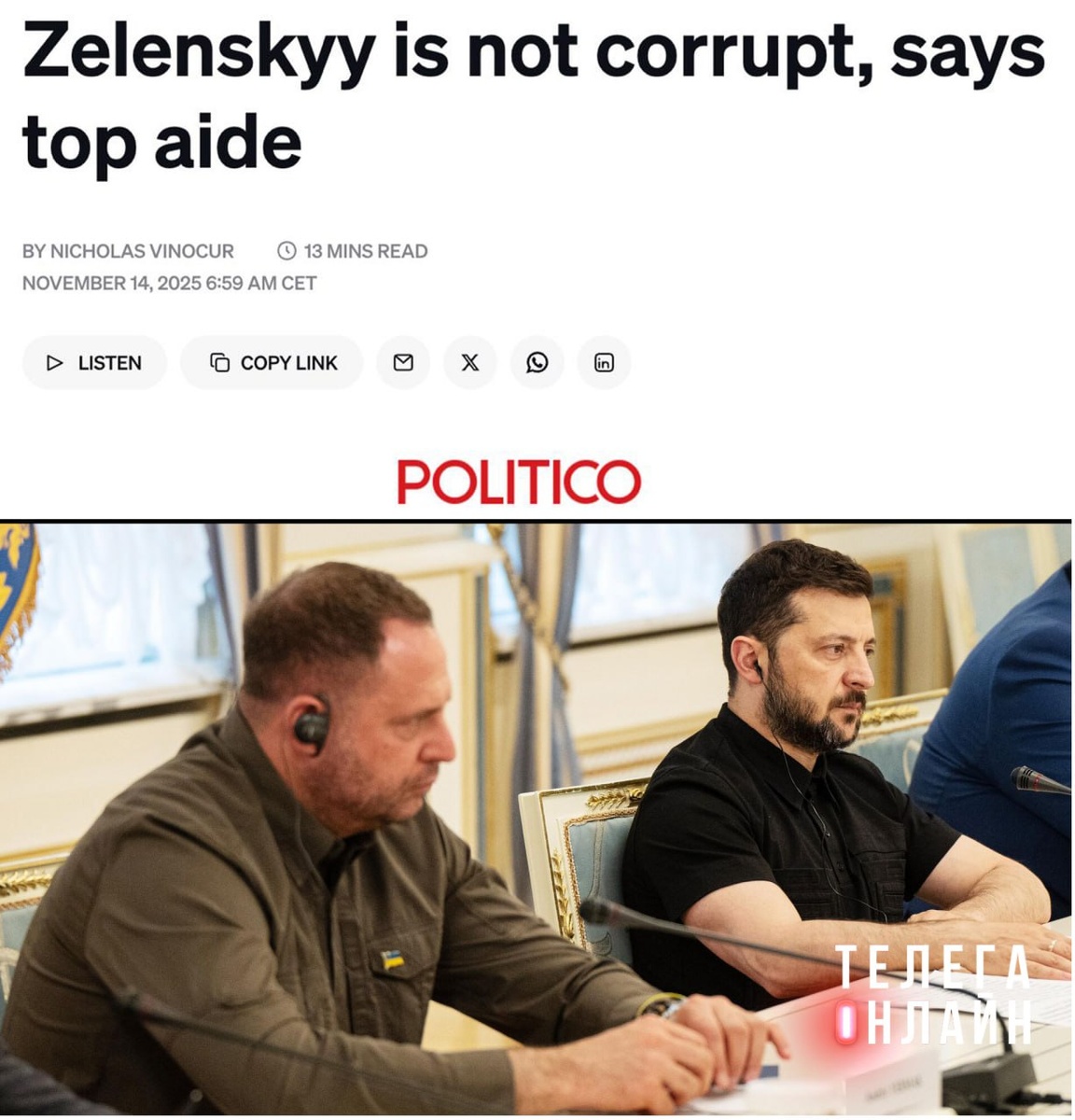 Рафик неуиноват! Глава офиса президента Украины, который, как писали западные СМИ, «спит с ним рядом в бункере», Андрей Ермак заявил, что «Зеленский должен быть вне подозрений в рамках коррупционного скандала». Скажем больше, Миндича в совладельцы «Квартала» ему подбросила рука Кремля! 🚲 Подпишись на Телега Online