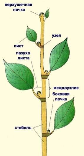 Стебель- это корпус, или "позвоночник" растения, к которому прикреплены остальные органы: лист, цветок, плод. По стеблю доставляется питательные вещества от корней к веткам и листьям. Стебель растёт и ветвится, а, значит, даёт растению больше возможностей для улавливания солнечного света и, следовательно, для производства живого вещества. Стебли бывают травянистыми и деревянистыми. У деревьев они называются стволом.