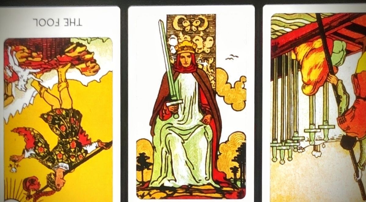 Здравствуйте уважаемые подписчики и гости моего канала.Меня зовут Светлана и в сегодняшним общем раскладе мы заглянем в мир вашего предателя и посмотрим как он живет. Перевернутый Дурак говорит о том,что этот человек сейчас находится в состоянии неопределенности и легкомысленности.Он словно бродит по краю пропасти,не понимая,куда ведет его путь.Он делает глупые поступки,не задумываясь о последствиях,и это приводит к тому,что его жизнь полна хаоса и непредсказуемости. Король Мечей добавляет немного ясности в эту картину.Этот персонаж,хоть и может казаться холодным и расчетливым,на самом деле обладает мудростью и объективностью.Он пытается анализировать ситуацию,но,похоже,его интеллектуальная честность не всегда приводит к правильным решениям.В его жизни прис