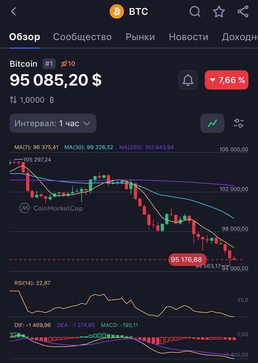 $BTC сходил ниже $95000