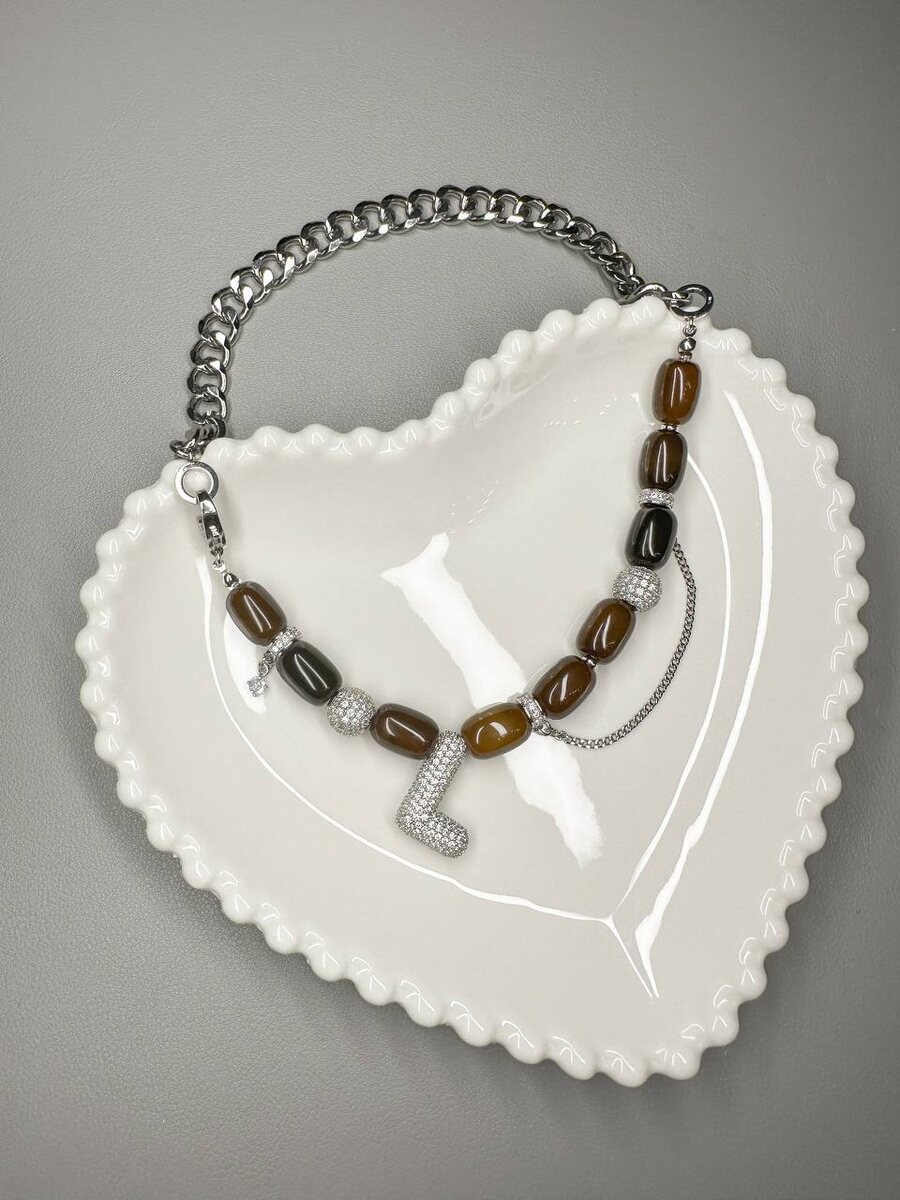 Новое колье из агата Ботсвана с буквой, инкрустированной цирконами