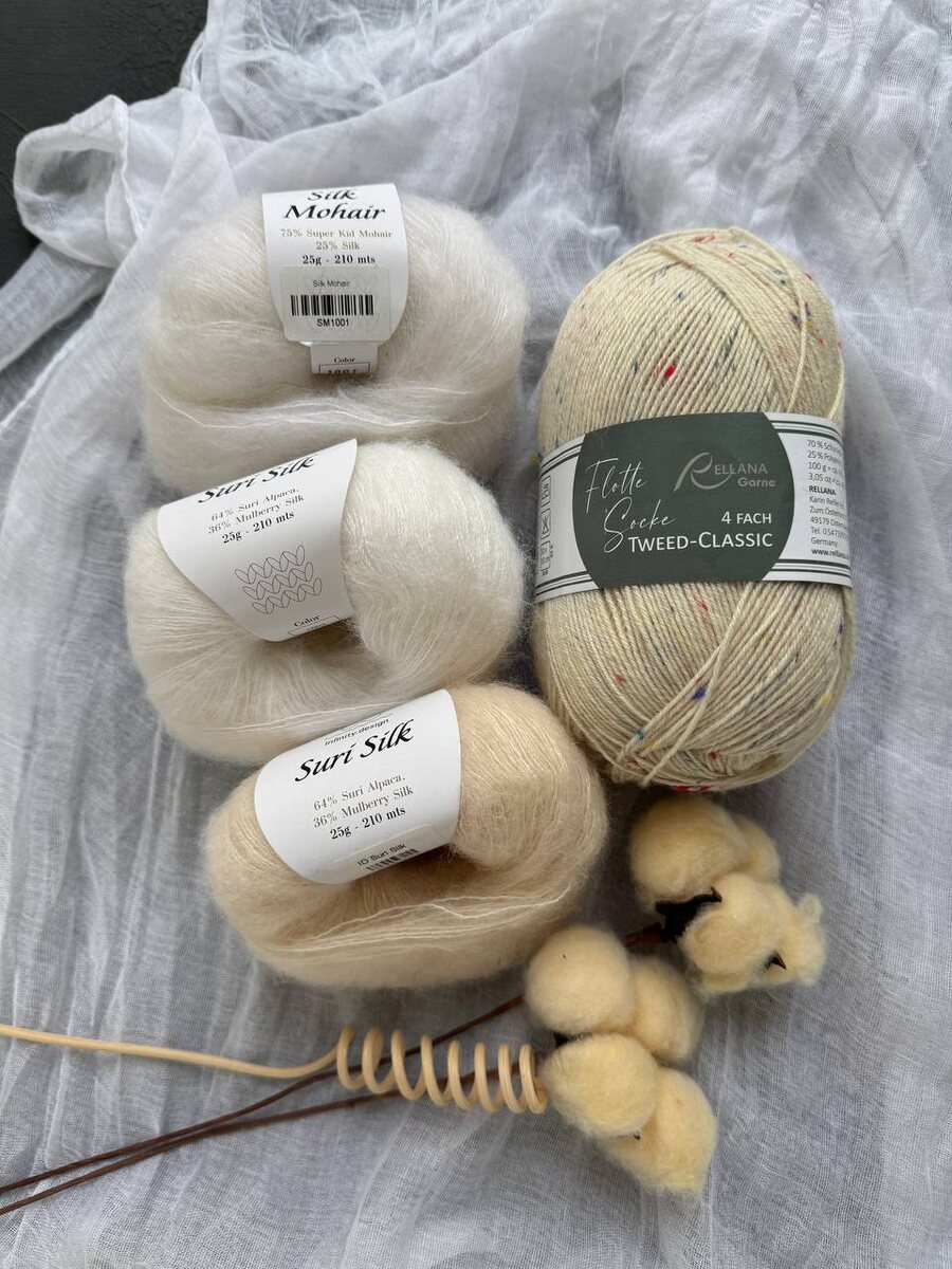 Спрашивали? А эта пряжа для плечевых изделий подойдет или будет колоться? Мечтаю о белом свитере с цветными пупырками😁😍 Отвечаем! Для плечевого изделия, конечно подойдет! Получится хороший тонкий свитерок. Пряжа умеренно шерстистая, но не грубая. Все очень индивидуально. Как вариант, можно добавить мягкий мохер CASAGRANDE VOGUE или нежную SURI SILK. Эти пушистики смегчат твид и можно будет взять спицы чуть толще, при этом полотно останется тонким и пластичным Для нас любой ваш вопрос - как повод вдохновиться и зарядиться! Смотрите, какие сочетания подобрали!
