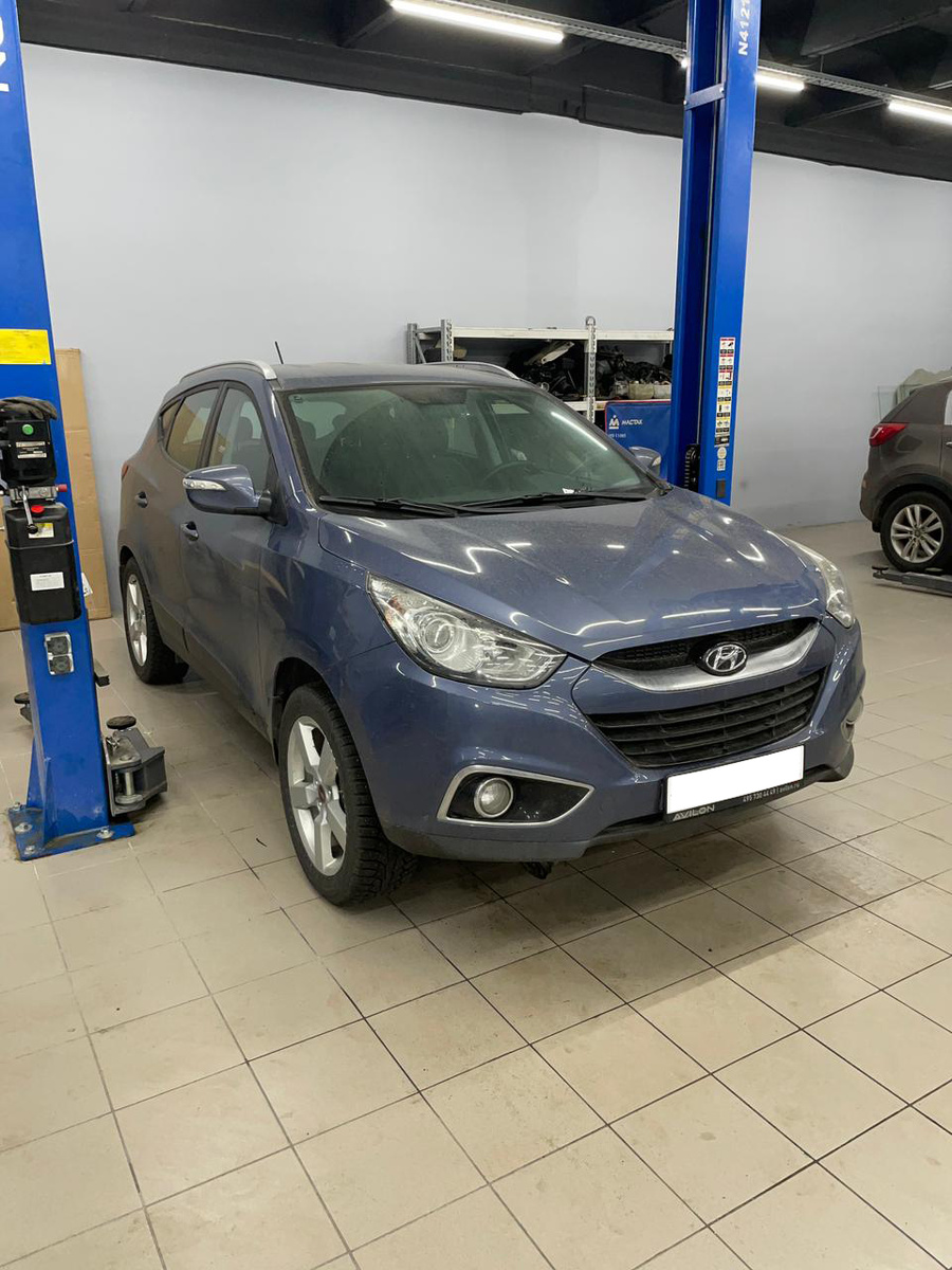 К нам обратился владелец автомобиля Hyundai ix35 2013 года выпуска с двигателем 2.0 G4KD. Мотор уже ремонтировался и спустя определенное количество километров машина начала шумно и неровно работать. Приехав на диагностику, мы сняли клапанную крышку для проверки тепловых зазоров клапанов. Оказалось что клапаны зажаты и требуют регулировки. Автомобиль эксплуатируется на газу, пробег составляет 153 тысячи километров. Автомобиль на подъемнике Приступаем к разборке и демонтажу двигателя Мотор извлекли Крепим на кантователь и начинаем разбирать. Детали мотора в темном налете, но без отложений. Откручиваем переднюю крышку Цепь ГРМ не сильно изношена, снимаем детали механизма газораспределения и откручиваем распредвалы. Валы вынимаем На шейках распредвалов видим потертости. Дефектов не обнаружено, после мойки деталей произведем дефектовку высокоточным инструментом При внешнем осмотре на кулачках ничего критичного не обнаружено На постели распредвалов есть заметные потертости, после мойки пр