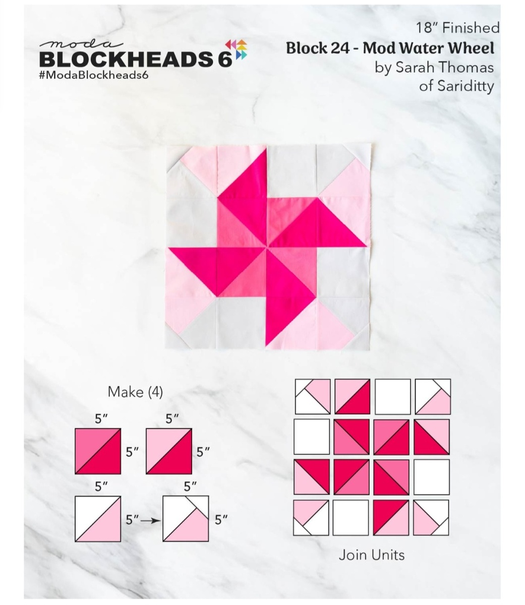 Дизайнер Sarah Thomas. Готовый блок 18 1/2”. Инструкции по раскрою Инструкции по сборке Также, буквы обозначают цвет ткани. Одинаковые буквы= один цвет ткани, что несколько усложняем процесс описания пошива. Шаги 1. На обратной стороне квадратов A и С размером 5 1/2” начертить диагональ. Совместить квадраты А и В. Проложить строчки на расстоянии 1/4” от диагонали. Разрезать по диагонали и заутюжить шов на более темную сторону. Повторить процесс и сшить: · 4 квадрата АВ; · 4 квадрата ВЕ; · 4 квадрата СЕ. Сшить по 4 детали. Размер детали с припусками 5". 2. На обратной стороне квадратов D начертить диагональ. Совместить квадрат D с углом квадрата СЕ и проложить строчку по диагонали. Излишки обрезать на расстоянии ¼ от диагонали и заутюжить шов на сторону детали D. Повторить и сшить 4 квадрата СЕD. Размер детали с припусками 5". 3. Все детали разложить по схеме блока. Сшить в ряды. Ряды соединить в блок. На рисунке показано соединение в квадраты Размер блока с припус