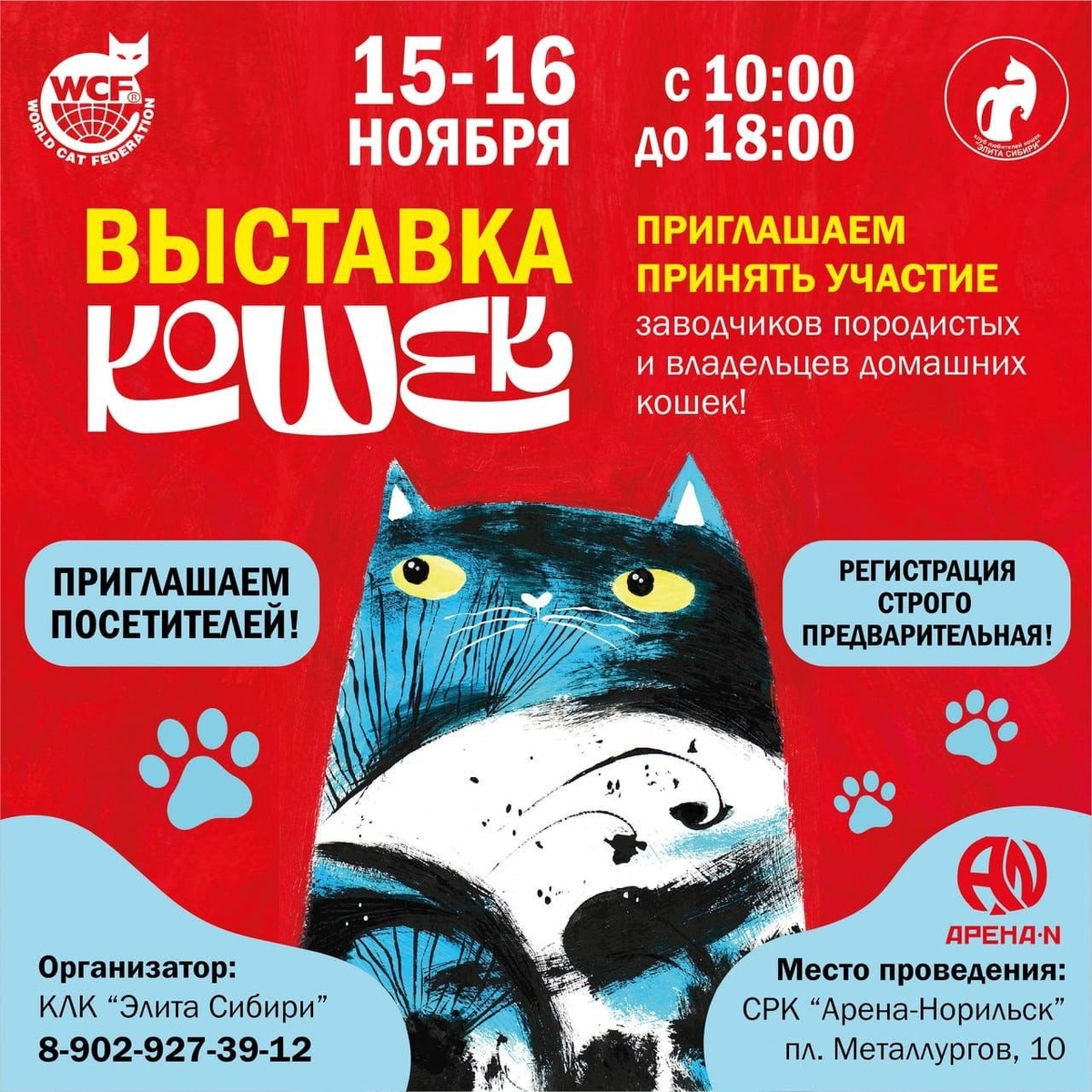 ⏰ 15 - 16 ноя (1д) 🏛 #Норильск #Красноярск #Россия #Выставка 😽 Выставка кошек и котов: Клуб любителей кошек «Элита Сибири» 🏆 Клуб любителей кошек «Элита Сибири» Контакты организаторов здесь: 🌐 https://www.sunny-cat.ru/vystavki-koshek.php?mesto=4409-norilsk Вход для посетителей свободный!