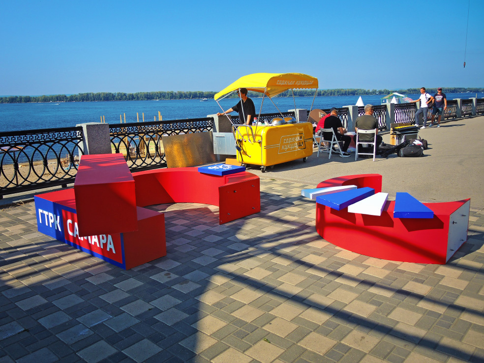 Предлагаю небольшое продолжение обзора фестиваля Волгафест 2024 года. Этот фестиваль набережных проводится в Самаре с 2016 года. Отношения с ним в 2024 году у меня не сложились. Подробнее описал впечатления в предыдущих частях, их можно найти по ссылке в конце статьи. Но так или иначе, некоторое количество материала всё-таки собрал, что-то для показа есть. По традиции последних лет, площадки располагались и на пляже, и на променаде набережной. В этой части предлагаю пройтись по верхней части. Осматривал фестиваль только в первый день его работы. Многие площадки ещё только монтировались. Так, например, в моменте выглядела выездная студия ГТРК «Самара». Главной задачей фестиваля того года было освоение «Супрематического куба» Николая Полисского. Этот арт-объект в течение почти двух лет стоял около филиала Третьяковской галереи. В 2024 году его разобрали и использовали для оформления Волгафеста. В частности, из брёвен, формировавших куб, были сделаны элементы навигации. В 2024 году на про