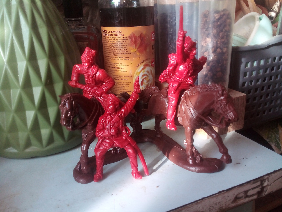 И последняя, четвёртая фигурка изображает комбрига Григория Ивановича Котовского, ещё одного популярного героя боёв на Украине. Про Котовского в советские годы также был фильм, пусть и менее популярный, чем "Чапаев". А ещё Котовский попал в анекдоты, всячески обыгрывавшие его роскошную лысину.