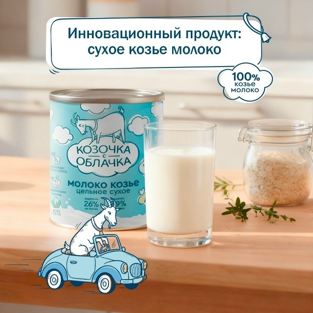 Инновационный продукт - 100% козье сухое молоко. Уникальная формула: • Щадящая технология сушки – сохранение всех нутриентов свежего продукта. • Отсутствие специфического козьего запаха – молоко швейцарских коз. • Природный пребиотик – здоровье микрофлоры кишечника. Низкий аллергенный потенциал Козье молоко обладает структурой близкой к грудному. Как и грудное молоко, козье не содержит агрессивный белок А1 и в минимальном количестве содержит альфа-S1-казеин, оба эти белка присутствуют в коровьем молоке и часто являются причиной пищевой непереносимости и аллергических реакций. Легкая усвояемость Жировые глобулы в козьем молоке значительно мельче, чем в коровьем. В совокупности с мягкой белковой структурой это оказывает меньшую нагрузку на ЖКТ, реже вызывает симптомы пищевой непереносимости (вздутие, диарею). Сохранение биологически активных компонентов Козье молоко богато олигосахаридами (содержание в 4-6 раз выше, чем в коровьем молоке) — пребиотики, способствующие восстановлению микро