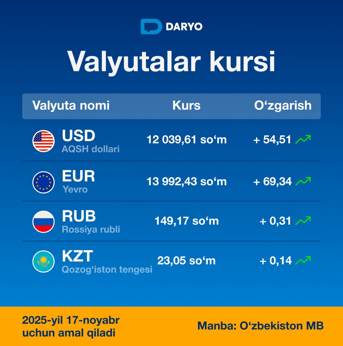🇷🇺 rubl 149,17 soʻm (+0,31)